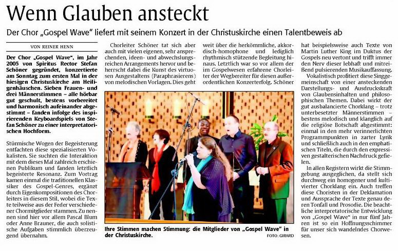 RHEINPFALZ, 9. Februar 2011 Konzert in der Christuskirche Kaiserslautern, 6. Feburar 2011 zurück